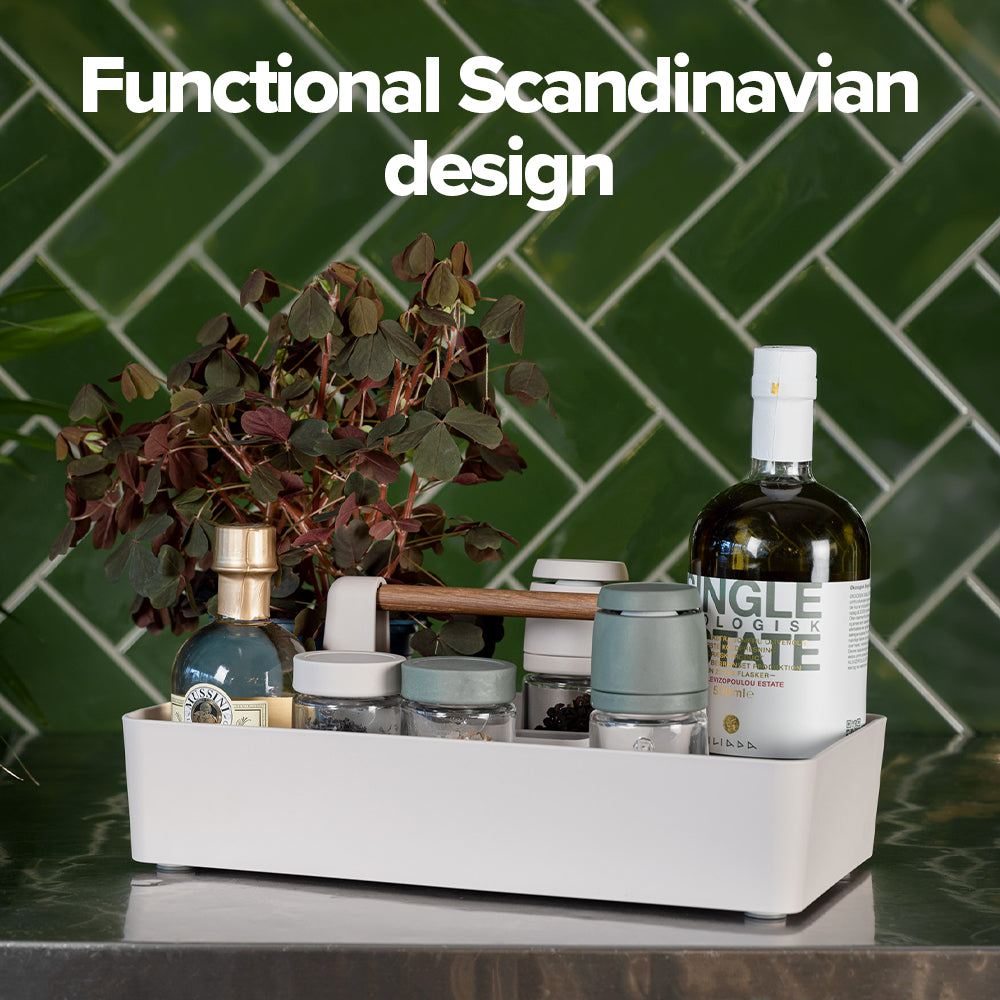 - Multi-purpose organizer designed for both kitchen and lifestyle use – perfect for oils, condiments, utensils, napkins, or Crushgrind® grinders