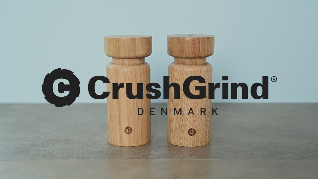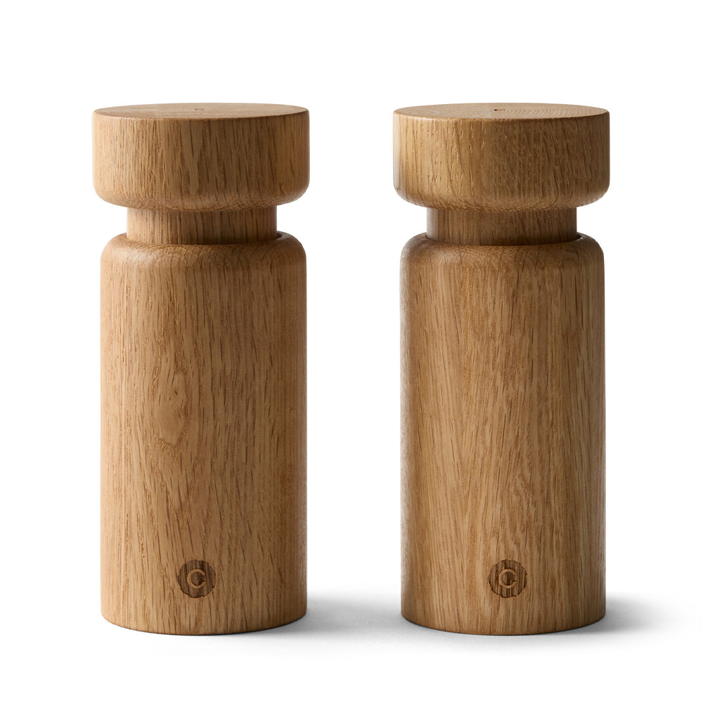 • Set of two grinders featuring elegant Scandinavian design in natural oak wood